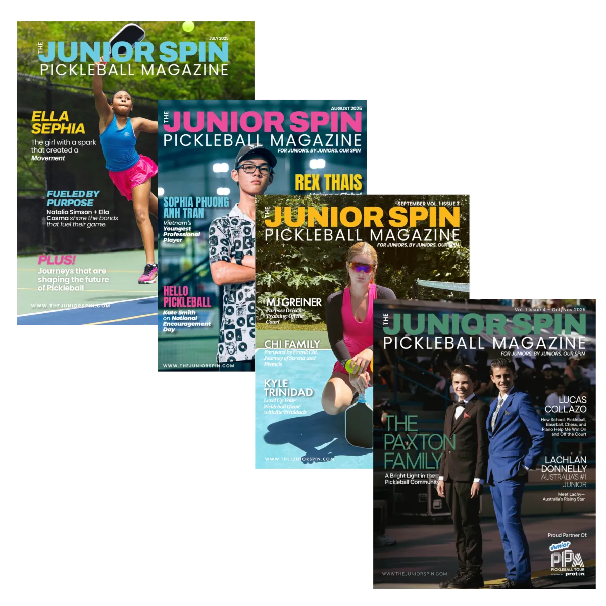Whether you’re into the feel of a crisp magazine in your hands or prefer to read on the go, The Junior Spin delivers. Choose from print editions, digital downloads, or lock in a 12-month subscription so you never miss an issue. Each edition is packed with player spotlights, behind-the-scenes tournament highlights, training tips, and stories that bring youth pickleball to life. However you read it—make sure you’re in the spin.